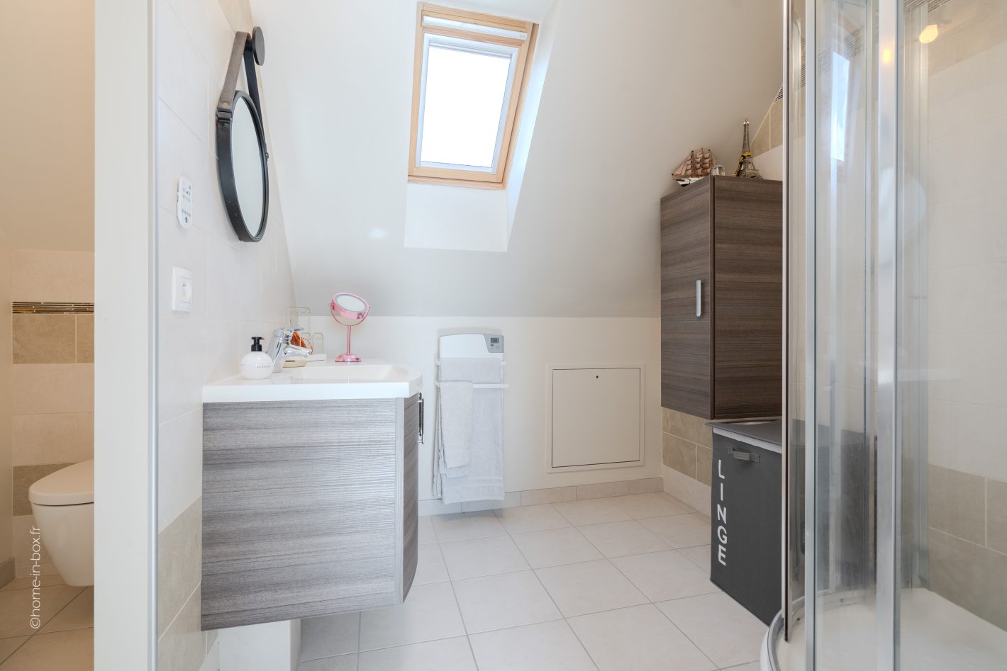 1 chambre spacieuse dans les combles aménagés avec salle d’eau et WC