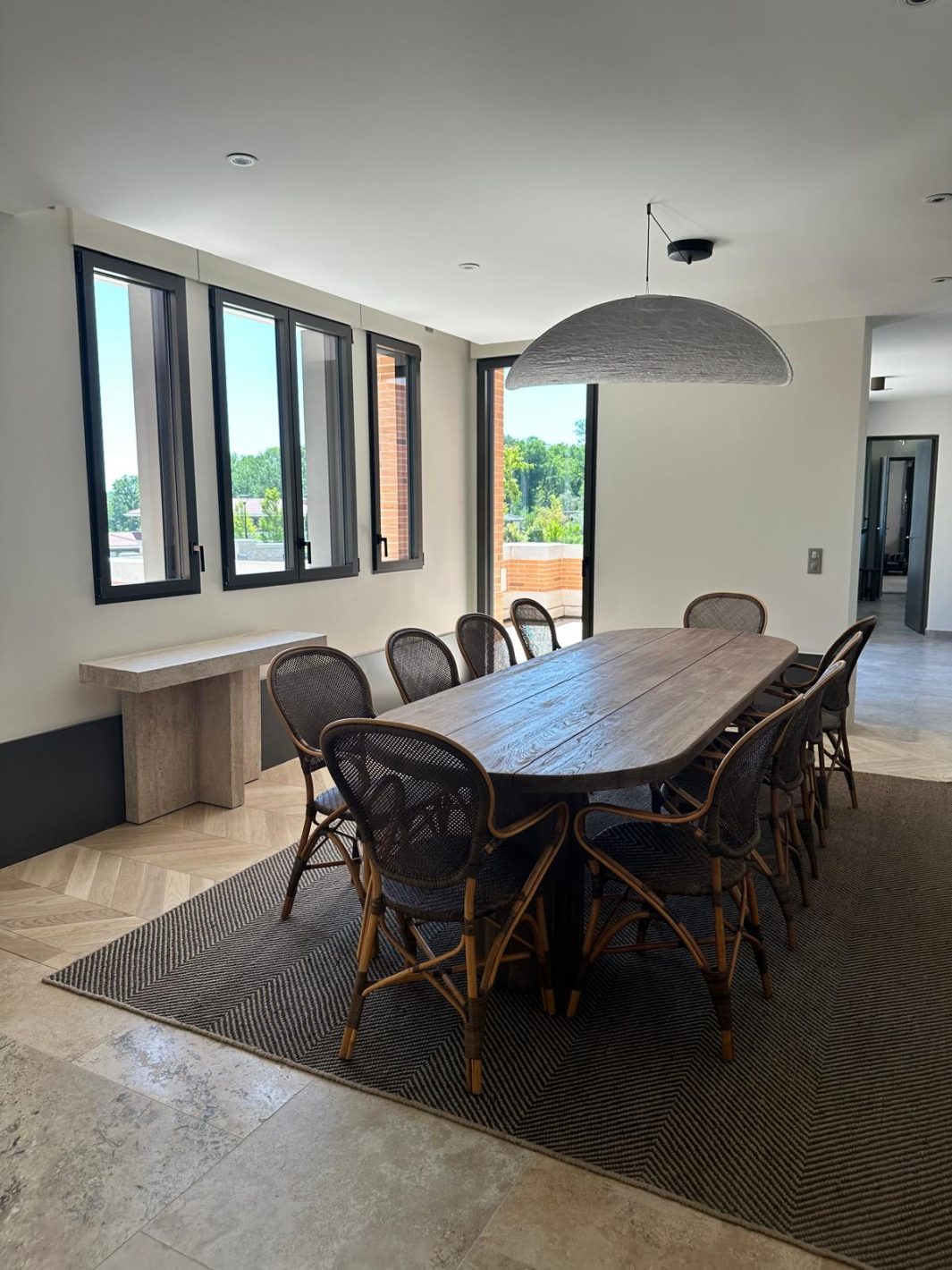 L’intérieur se déploie sur deux niveaux et propose une pièce de vie exceptionnelle de plus de 100 m², baignée de lumière et pensée pour la convivialité et la détente. La cuisine ultra-moderne entièrement équipée, l’arrière-cuisine et la buanderie viennent compléter ce vaste espace.